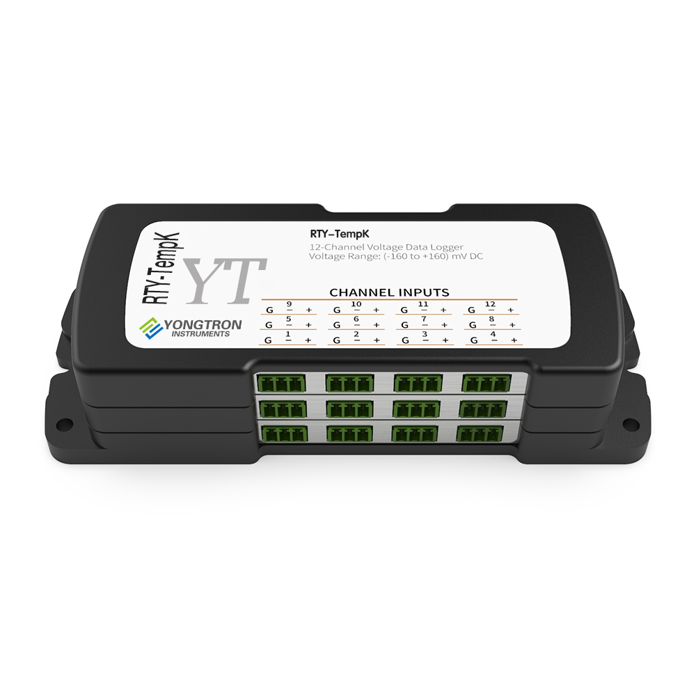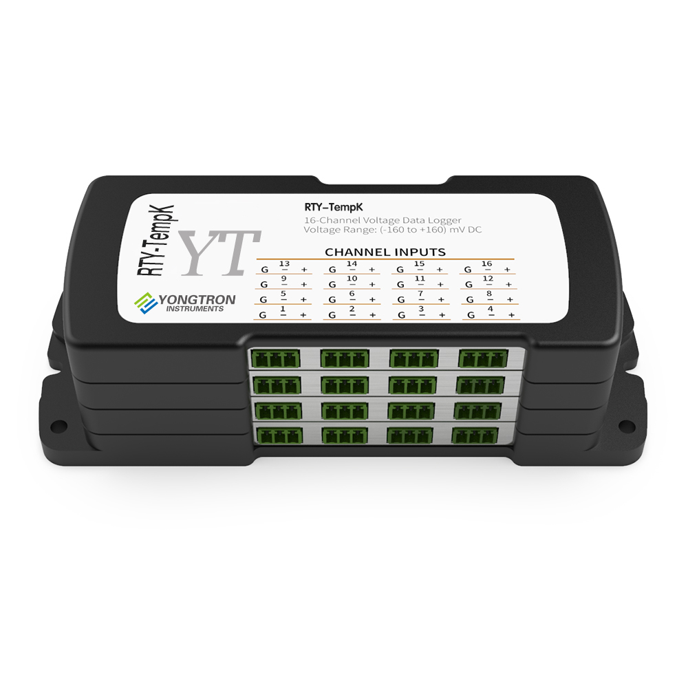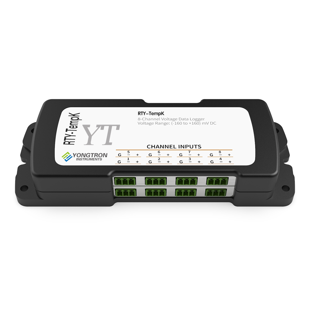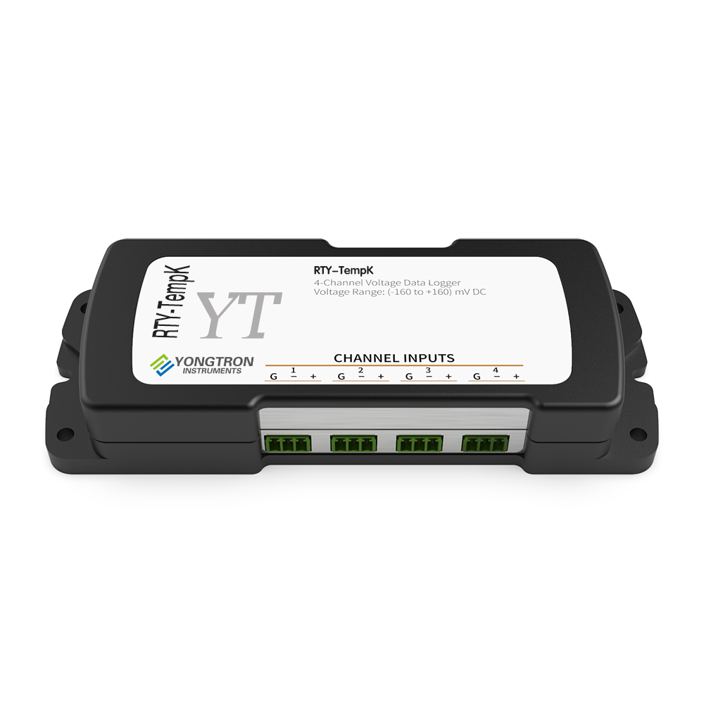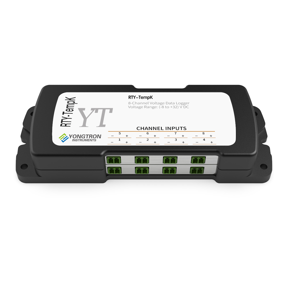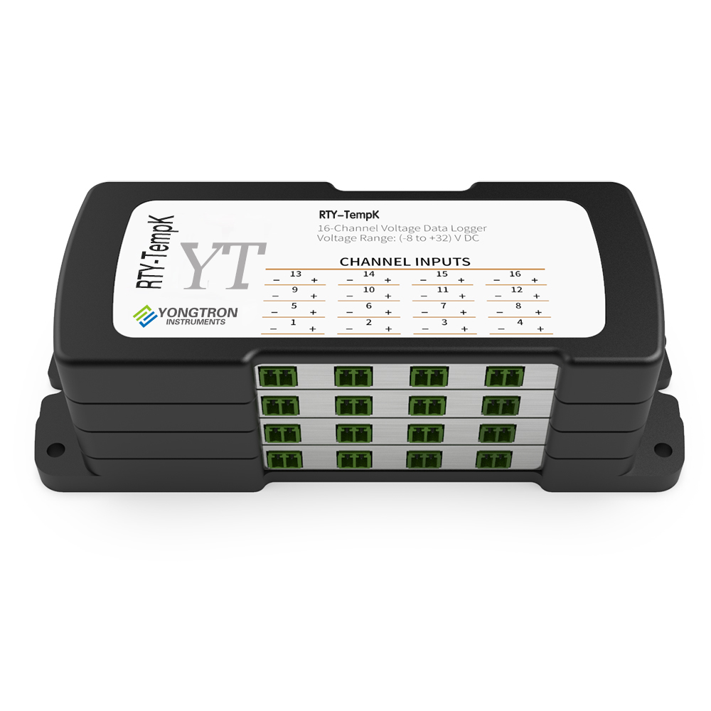 RTY-TempX 系列包括 RTY-TempX4、RTY-TempX8、RTY-TempX12 和 RTY-TempX16 直流电压数据记录器,提供三种电压范围:160 mV、3.2 V 和 32 V。