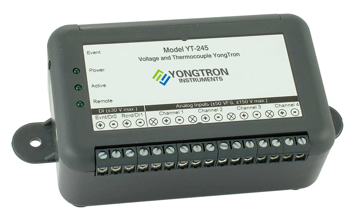 YT-245 型是一种低成本数据采集系统,该产品性价比高。四个模拟输入通道适用于各种测量类型和应用。每个通道都可以编程为进行热电偶或电压测量。编程为电压通道,您可以选择十二个测量范围之一,支持从±10 mV到±50 V的满量程值。 编程为热电偶通道,您可以从八种热电偶类型中进行选择:J,K,T,B,R,S,E,N。